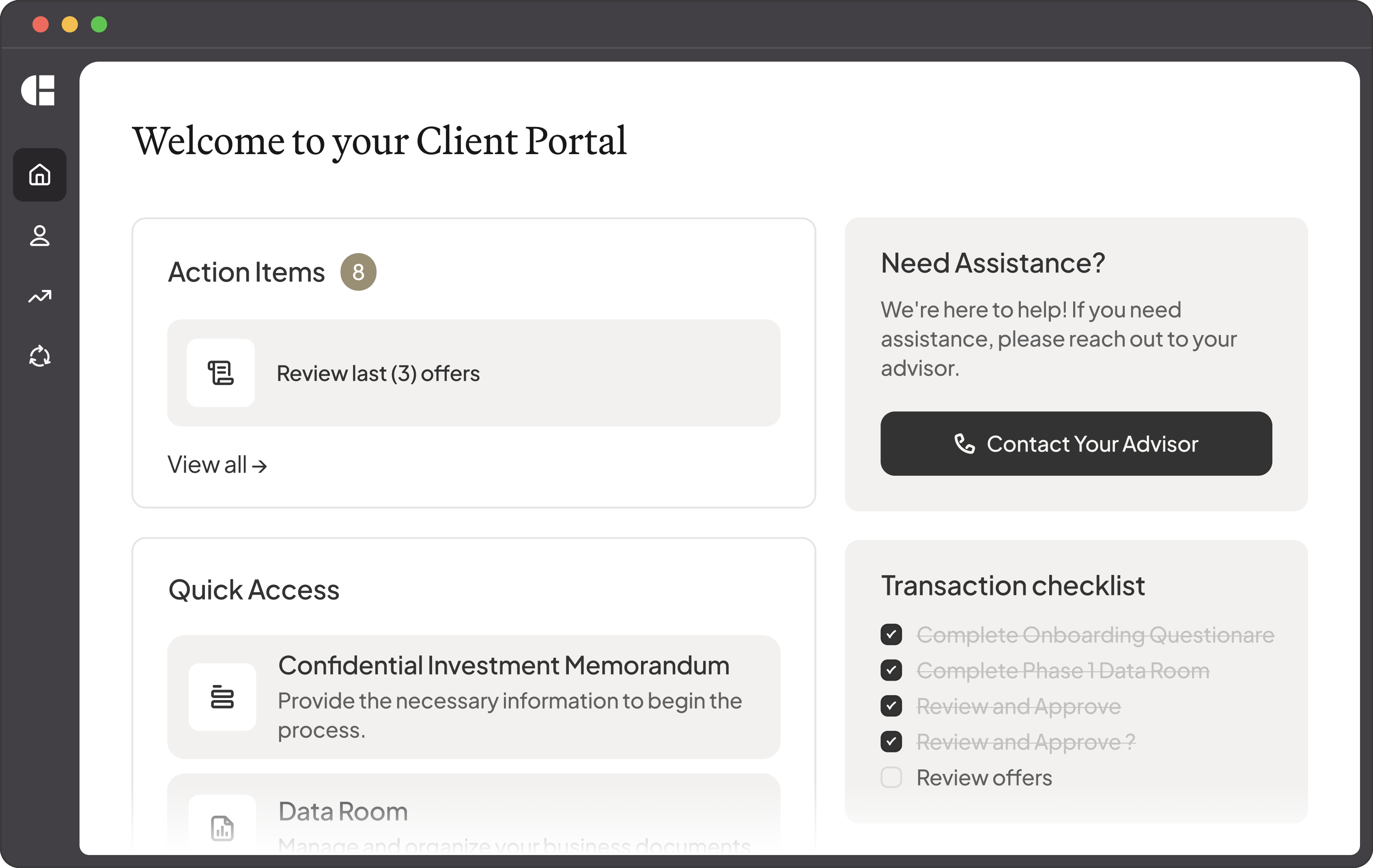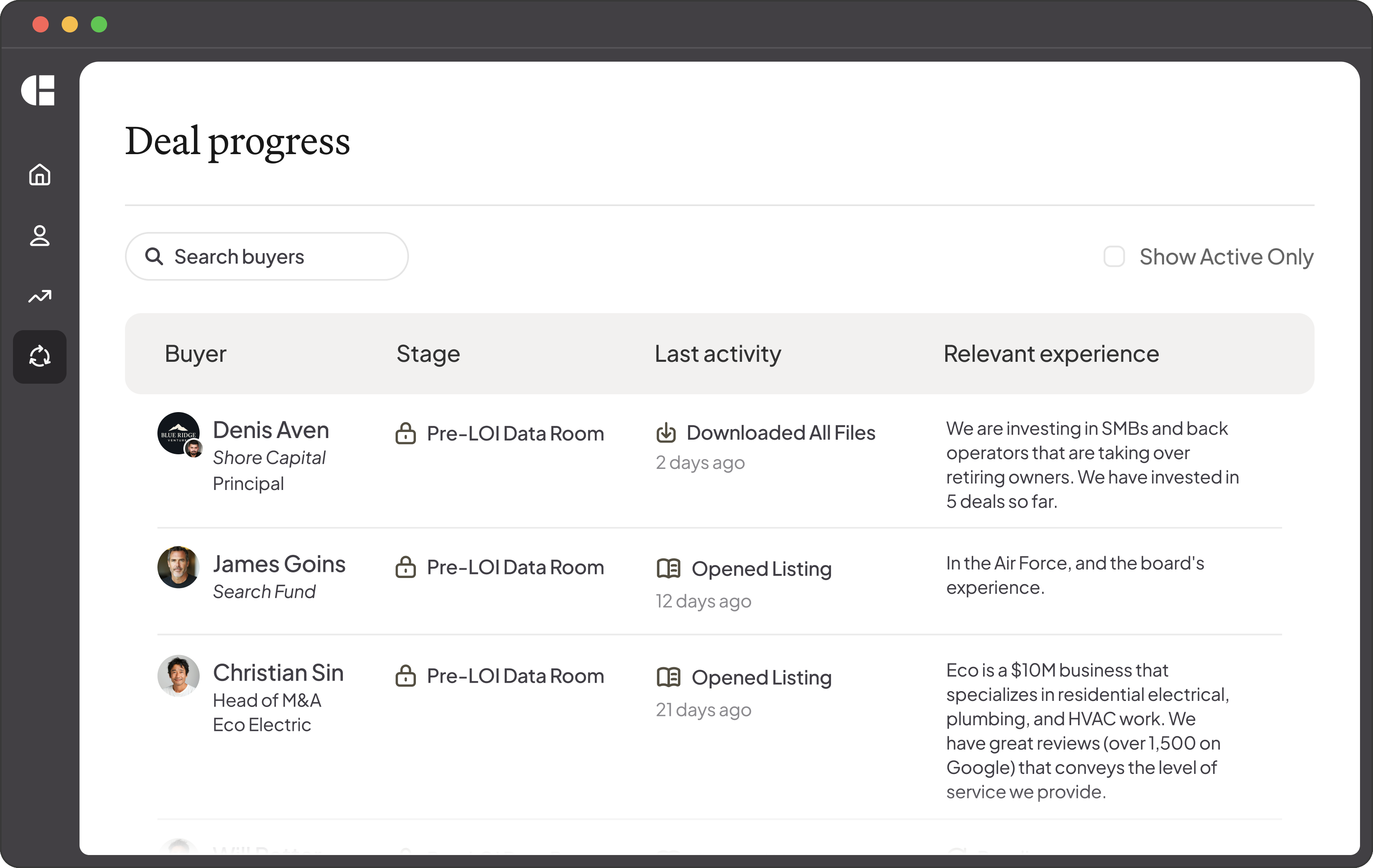 Stay up-to-date on buyer activity in real-time through our centralized deal workspace.