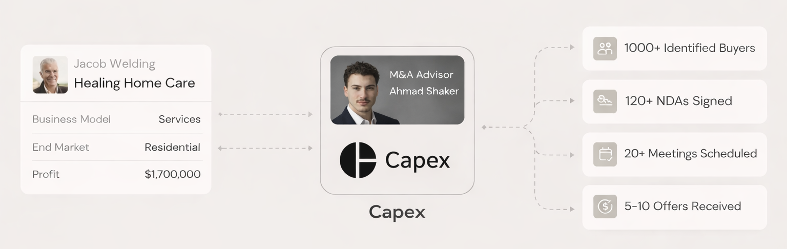Sarah L. MorganI'd been trying to sell my HVAC business for over a year with no luck. Capex had serious buyers at the table within two weeks. Still can't believe how fast it happened.