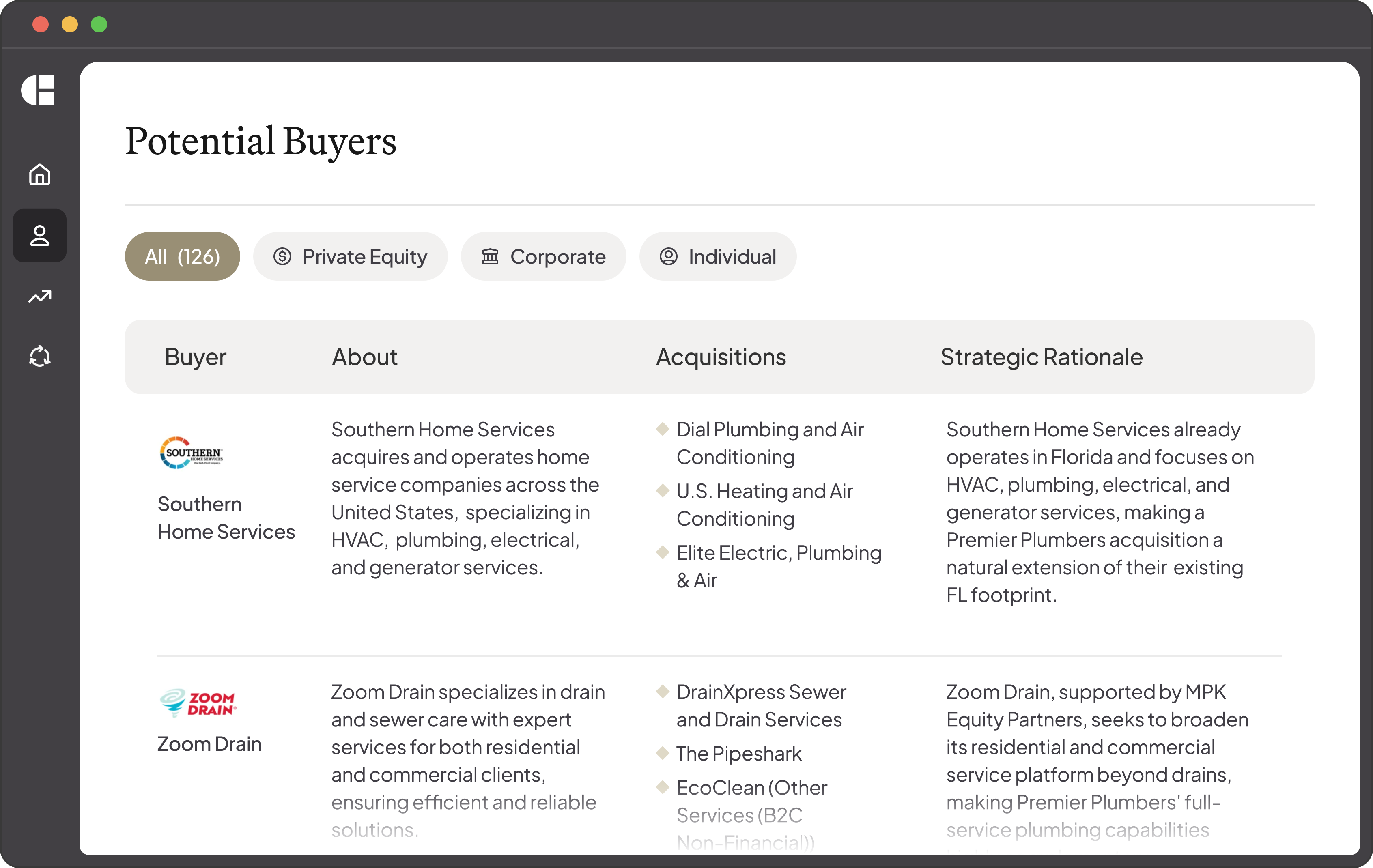 We will identify and engage hundreds of buyers with relevant operating or investing experience.